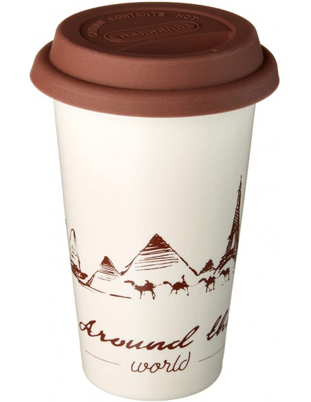 Tazza in ceramica e coperchio in silicone con proprietà termiche per mantenere la bevanda calda più a lungo.